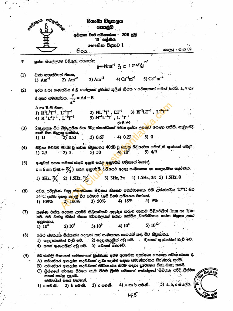 Jude Shenal Wijesinghe March 6 2019 at 1149 PM. Use these previous exam papers to revise and prepare for the upcoming Advanced Level exams. Click here for the latest free online courses from Harvard University.