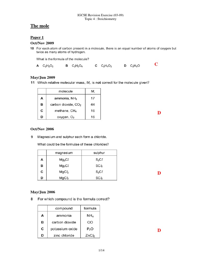 41 The mole concept. Please note that these papers may not reflect the content of the current syllabus. Stoichiometry - IGCSE Chemistry Past Paper Solutions.