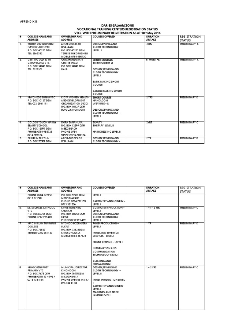 Vocational Education And Training By Government In Tanzania Pdf Free Download
